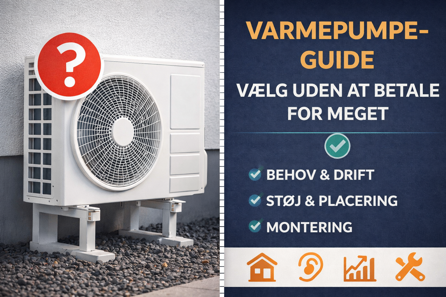 - Vælg type: luft-luft / luft-vand / jordvarme